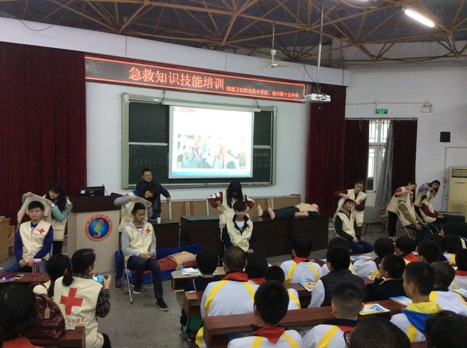 為了辦好這次實踐活動,學(xué)院團委邀請我院紅十字志愿者、省紅會急救培訓(xùn)師葉榕副教授進行授課。葉榕副教授根據(jù)授課學(xué)生是初中學(xué)生這一特點,對授課內(nèi)容仔細(xì)斟酌,甄選了青少年急救知識技能中最重要的內(nèi)容進行講授。理論知識講解完畢后,第三期青馬班的紅十字救護員們就徒手心肺復(fù)蘇、創(chuàng)傷救護繃帶、三角巾止血等操作技能進行現(xiàn)場示范,并指導(dǎo)十五中學(xué)生進行分段性學(xué)習(xí)。十五中的學(xué)生們紛紛上臺操作,親身體驗了人生第一次的心肺復(fù)蘇操作,我院志愿者們一一耐心指導(dǎo),直至他們能夠理解和掌握。