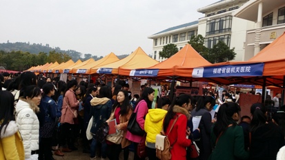 1月25日上午,我院2015屆畢業(yè)生供需見(jiàn)面會(huì)在圖書(shū)館廣場(chǎng)成功舉行,現(xiàn)場(chǎng)共有135家用人單位參會(huì),提供就業(yè)崗位3000余個(gè)。招聘會(huì)現(xiàn)場(chǎng)氣氛濃烈,人頭攢動(dòng),多家衛(wèi)生醫(yī)療單位、醫(yī)藥企業(yè)擠滿(mǎn)了咨詢(xún)的畢業(yè)生,用人單位也根據(jù)需求,閱覽畢業(yè)生簡(jiǎn)歷,與畢業(yè)生親切交流、吸引人才。 林春明書(shū)記、魏立娜副院長(zhǎng)親臨招聘會(huì)現(xiàn)場(chǎng),與企業(yè)相關(guān)負(fù)責(zé)人親切交流,了解用人單位需求,各系部黨總支書(shū)記和畢業(yè)生輔導(dǎo)員到現(xiàn)場(chǎng)與用人單位接洽溝通,為畢業(yè)生應(yīng)聘提供指導(dǎo)和服務(wù)。 我院2015屆高職畢業(yè)生共有1887人,有臨床醫(yī)學(xué)、口腔醫(yī)學(xué)、護(hù)理、醫(yī)療美容、藥學(xué)、中藥、醫(yī)學(xué)檢驗(yàn)技術(shù)、醫(yī)學(xué)影像技術(shù)、康復(fù)治療技術(shù)、衛(wèi)生信息管理、醫(yī)用電子儀器與維護(hù)等19個(gè)專(zhuān)業(yè)及專(zhuān)業(yè)方向,中職共有護(hù)理、藥劑、醫(yī)學(xué)檢驗(yàn)技術(shù)、農(nóng)村醫(yī)學(xué)4個(gè)專(zhuān)業(yè)416名畢業(yè)生。 在當(dāng)前全國(guó)普通高校畢業(yè)生就業(yè)總量壓力和結(jié)構(gòu)性矛盾依然突出的嚴(yán)峻形勢(shì)下,隨著學(xué)院辦學(xué)綜合實(shí)力增強(qiáng)和人才培養(yǎng)質(zhì)量不斷提升,系部有品牌,專(zhuān)業(yè)建設(shè)有特色,我院畢業(yè)生愈加受到用人單位的青睞和認(rèn)可,近年來(lái)畢業(yè)生年底就業(yè)率均達(dá)到99.5%。 舉辦畢業(yè)生校園供需見(jiàn)面會(huì),既為廣大畢業(yè)生提供了就業(yè)崗位,搭建了一個(gè)學(xué)院與用人單位的交流平臺(tái),也是對(duì)在校生進(jìn)行了一次就業(yè)指導(dǎo)的實(shí)踐教育,對(duì)學(xué)生轉(zhuǎn)變就業(yè)觀念,認(rèn)清就業(yè)形勢(shì),引導(dǎo)合理定位、調(diào)整就業(yè)期望,明確專(zhuān)業(yè)學(xué)習(xí)目標(biāo),提升職業(yè)素養(yǎng)等方面都有較大幫助。學(xué)院將進(jìn)一步加大就業(yè)指導(dǎo)與個(gè)體咨詢(xún)輔導(dǎo),加強(qiáng)就業(yè)管理和服務(wù)工作,關(guān)注特殊群體畢業(yè)生就業(yè),開(kāi)拓非主干專(zhuān)業(yè)就業(yè)市場(chǎng),全面促進(jìn)我院畢業(yè)生充分高效就業(yè)。(學(xué)生工作處)