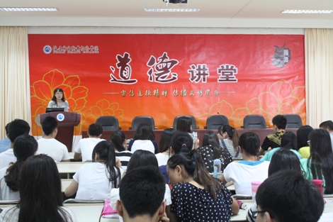 為了貫徹落實黨的十八大精神,加強社會主義核心價值體系建設(shè),提升師生的道德素質(zhì),促進精神文明建設(shè),共建和諧校園,實現(xiàn)學(xué)生全面發(fā)展。公共基礎(chǔ)部于6月17日上午在行政樓六樓舉辦了以“引領(lǐng)道德新風(fēng)尚,傳遞青春正能量”主題的道德講堂活動。學(xué)院黨委書記林春明、黨委工作部董榕部長、系部熊美蘭主任、洪聿榮書記、部分教師以及全體同學(xué)參加了本次活動。
