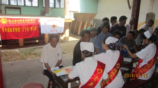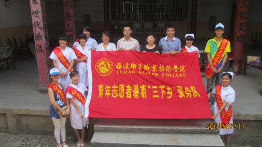 2014年7月9日,福建衛(wèi)生職業(yè)技術(shù)學(xué)院一行14人(教師6人,學(xué)生8人)在魏立娜副院長的帶領(lǐng)下,來到寧德市屏南縣,與共青團(tuán)屏南縣委聯(lián)合開展暑期“三下鄉(xiāng)”社會(huì)實(shí)踐衛(wèi)生健康下基層活動(dòng)。