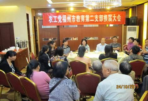 2013年10月24日下午,農(nóng)工黨福州市教育二支部召開換屆大會(huì)。福建衛(wèi)生職業(yè)技術(shù)學(xué)院副書記陳雄、農(nóng)工黨福州市委會(huì)副主委、倉山區(qū)工委主委朱琪、副主委陳玲瓏、農(nóng)工黨市委組織處處長(zhǎng)鄭華應(yīng)邀到會(huì)。