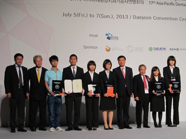 在韓國(guó)舉辦第五屆口腔醫(yī)學(xué)技術(shù)專業(yè)在校生國(guó)際技能大賽各國(guó)獲獎(jiǎng)選手合影 我院葉永勝同學(xué)獲獎(jiǎng)作品