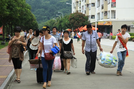 金秋校園,陽(yáng)光明媚,彩旗飄揚(yáng),鮮花綻放,一條條歡迎新同學(xué)的醒目標(biāo)語(yǔ),一張張歡迎新同學(xué)的親切笑臉,一件件迎接新同學(xué)的細(xì)致安排,充滿了熱情和諧的迎新氛圍。 2013年9月7日,來(lái)自五湖四海兩千多名2013級(jí)新生懷著向往已久的大學(xué)夢(mèng)來(lái)到了這片神圣的醫(yī)學(xué)殿堂。院領(lǐng)導(dǎo)對(duì)此高度重視,召開(kāi)了迎新協(xié)調(diào)會(huì),要求各處室、系部做好充分的準(zhǔn)備,簡(jiǎn)化入學(xué)程序、增加接待人員、提倡人性化服務(wù),做到一切從新生需要出發(fā)。 報(bào)到當(dāng)天,學(xué)院學(xué)生工作處、團(tuán)委及各系部組織學(xué)生會(huì)干部在福州火車(chē)站、火車(chē)南站、汽車(chē)南站、北站、洪山橋、西客站等站點(diǎn)設(shè)立新生接待處,迎接新生及家長(zhǎng)。校內(nèi)各系部新生注冊(cè)大本營(yíng)內(nèi),負(fù)責(zé)每一個(gè)流程的相關(guān)人員早上七點(diǎn)半已做好充分準(zhǔn)備,開(kāi)始了忙碌的工作,報(bào)到點(diǎn)的志愿者們?cè)谳o導(dǎo)員們的帶領(lǐng)下,認(rèn)真核對(duì)新生的注冊(cè)信息,細(xì)心地為新生講述注意事項(xiàng),發(fā)放新生材料和宿舍鑰匙等。等待注冊(cè)的新生們則有序地排好隊(duì),各系部書(shū)記、秘書(shū)及輔導(dǎo)員細(xì)心地為新生和家長(zhǎng)講解新生報(bào)名注冊(cè)程序并主動(dòng)幫助新生們解答各種關(guān)于住宿、學(xué)費(fèi)問(wèn)題,同時(shí)幫助家長(zhǎng)們將行李放到安置點(diǎn),并細(xì)心地為他們奉上一杯熱水。在一系列注冊(cè)手續(xù)完成之后,志愿者們將新生們送到寢室地點(diǎn),沿途為新生講解福建衛(wèi)生職業(yè)技術(shù)學(xué)院的相關(guān)情況。財(cái)務(wù)處設(shè)置的收費(fèi)點(diǎn)也十分有序而不亂,保衛(wèi)處工作人員在緊張地指揮車(chē)輛有序放置,學(xué)生工作處的工作人員在各報(bào)到點(diǎn)協(xié)調(diào)解決出現(xiàn)的問(wèn)題,后勤管理處整理新生宿舍,配好了衛(wèi)生工具,超市、食堂都準(zhǔn)備了充足的日用品、食品,為開(kāi)始新生活提供了有力的后勤保障……溫柔的解答、細(xì)心的照顧、體貼的服務(wù),讓初來(lái)乍到的家長(zhǎng)和新生們感受到了福建衛(wèi)生職業(yè)技術(shù)學(xué)院的滿腔熱情和誠(chéng)摯的歡迎。報(bào)到當(dāng)天,我院新生報(bào)到率比去年有明顯上升,達(dá)到92%。 郭素華院長(zhǎng)、陳雄副書(shū)記、廖偉堅(jiān)副院長(zhǎng)、黃開(kāi)良副院長(zhǎng)、魏立娜副院長(zhǎng)等院領(lǐng)導(dǎo)踐行群眾路線,積極深入到各系部報(bào)到點(diǎn),了解新生報(bào)到情況,關(guān)心新生及家長(zhǎng),及時(shí)解決和幫助家長(zhǎng)和新生遇到的各種實(shí)際困難。新生家長(zhǎng)紛紛表示,我院的工作效率高,服務(wù)熱情周到,孩子們?cè)谶@樣優(yōu)美的環(huán)境學(xué)院里生活、學(xué)習(xí)讓他們感到高興和放心,對(duì)孩子的未來(lái)充滿了信心和期待。熱情的接待和周到的服務(wù)減輕了新生旅途的疲倦,更讓新同學(xué)感受到了學(xué)院的溫暖與關(guān)懷。 ( 學(xué)生工作處撰稿 圖書(shū)館、各系部提供照片 )
