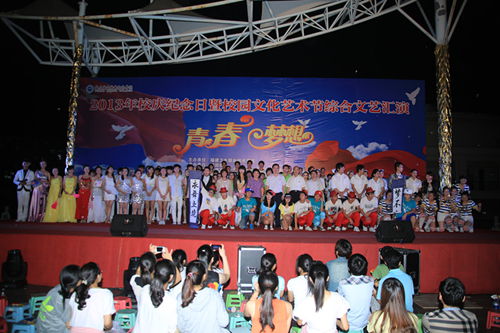晚上7點,2013年校慶紀(jì)念日暨校園文化藝術(shù)節(jié)綜合文藝匯演在明湖音樂廣場隆重舉行,學(xué)院林春明院長、陳雄副書記、黃開良副院長、魏立娜副院長以及各系部黨總支書記、輔導(dǎo)員老師等同千余名同學(xué)齊聚明湖湖畔共同欣賞演出。晚會首先表彰了2013年文化藝術(shù)節(jié)期間各項活動獲獎的個人及集體。在青春洋溢的健身操過后,文藝匯演正式拉開序幕。本次晚會以“青春·夢想”為主題,通過詩歌朗誦《我們的中國夢》、歌舞《Dream》《青春·夢想》、小品《超級夢想秀》等表演生動的表現(xiàn)出閩衛(wèi)院學(xué)子的白衣天使夢。由醫(yī)學(xué)技術(shù)系馬少寧主任表演的歌伴舞《珊瑚頌》,林媛、樓燁、王鈍銳老師朗誦的《百年校慶賦》,邱萍老師表演的舞蹈《水晶之戀》,王燁、林宇老師合唱的《你若盛開》等節(jié)目,把整場晚會推向一個又一個的高潮。在全體演職人員最后的合唱《走向復(fù)興》中,為校慶紀(jì)念日成功的劃上了圓滿句號。(辦公室 教務(wù)處 工會 醫(yī)學(xué)技術(shù)系 團委 學(xué)生工作處 黨委工作部)