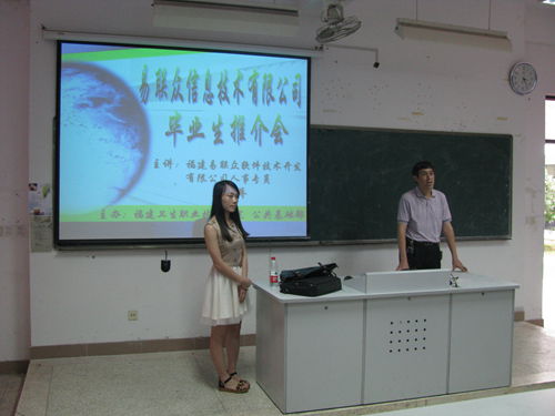 2013年6月25日下午,我院公共基礎(chǔ)部組織福建易聯(lián)眾軟件系統(tǒng)開(kāi)發(fā)有限公司舉辦衛(wèi)生信息管理專業(yè)畢業(yè)生推介會(huì)。易聯(lián)眾人事專員蔡桂嬌介紹了本公司的概況,內(nèi)容包括企業(yè)文化、硬件產(chǎn)品介紹、軟件系統(tǒng)完善,以及公司招聘信息等,同時(shí)這也為本屆畢業(yè)生提供了更多的就業(yè)信息。(藥學(xué)系 公共基礎(chǔ)部)