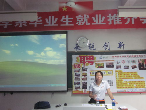 2013年6月26日下午,我院藥學(xué)系組織福州益生康伴醫(yī)療器械有限公司為2013屆畢業(yè)生舉行專場(chǎng)招聘會(huì),提供了直營(yíng)店銷售代表、直營(yíng)店見(jiàn)習(xí)店長(zhǎng)、人力資源經(jīng)理等近三十個(gè)就業(yè)崗位。