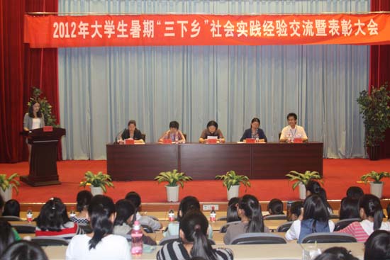 大會(huì)在莊嚴(yán)肅穆的國歌聲中拉開序幕。首先由宋維副書記宣讀社會(huì)實(shí)踐的表彰決定,分別授予社會(huì)實(shí)踐優(yōu)秀集體和個(gè)人、社會(huì)實(shí)踐優(yōu)秀指導(dǎo)老師、社會(huì)實(shí)踐積極分子,社會(huì)實(shí)踐優(yōu)秀調(diào)查報(bào)告等獎(jiǎng)項(xiàng)。隨后各獲獎(jiǎng)代表上臺(tái)領(lǐng)獎(jiǎng),并做匯報(bào)和交流發(fā)言。最后,魏立娜副院長對進(jìn)行本次大會(huì)作出總結(jié),她指出,我院學(xué)生在實(shí)踐中敢于挑戰(zhàn)自己,綜合素質(zhì)不斷提高,學(xué)院也將會(huì)一如既往地大力支持學(xué)生實(shí)踐活動(dòng),并希望同學(xué)們能在行動(dòng)中迎接十八大召開,樹立和落實(shí)科學(xué)發(fā)展觀,在投身實(shí)踐、服務(wù)社會(huì)中提高自身素質(zhì),提高分析和解決實(shí)際問題的能力,實(shí)現(xiàn)全面發(fā)展。