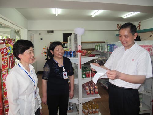 最后,楊華明秘書長與嚴(yán)肅書記共同為我院愛心超市揭牌,一同參觀了愛心超市,并為超市的發(fā)展提出了寶貴的意見和殷切的希望。
