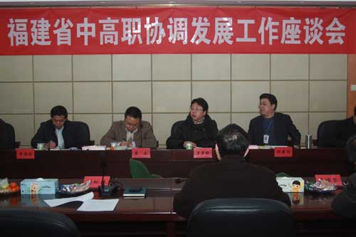 2012年2月17日,福建省中高職協(xié)調(diào)發(fā)展工作座談會在我院召開。教育廳高教處調(diào)研工作組,我院林春明院長、廖偉堅副院長、魏立娜副院長、教務(wù)處和學(xué)工處等有關(guān)負(fù)責(zé)人,閩江學(xué)院成人教育學(xué)院、黎明職業(yè)大學(xué)、福建商業(yè)高等??茖W(xué)校、漳州職業(yè)技術(shù)學(xué)院、福建信息職業(yè)技術(shù)學(xué)院、福州職業(yè)技術(shù)等六所高職學(xué)校的領(lǐng)導(dǎo)及有關(guān)負(fù)責(zé)人出席了此次座談會。會議由林春明院長主持。