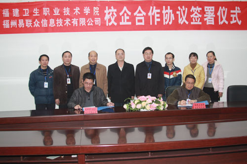2011年12月22日下午,我院與福州易聯(lián)眾信息技術有限公司簽署校企合作協(xié)議。學院林春明院長、陳雄副書記、辦公室鄭力宏主任、公共基礎部陳新副主任、蘭寶金副書記、熊美蘭副主任和福建省衛(wèi)生廳信息中心副主任俞建明、福州易聯(lián)眾信息技術有限公司李其鏗副總經理等出席了簽約儀式。