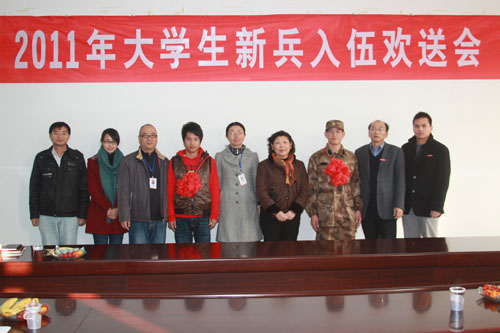 2011年12月9日下午,我院召開2011年大學(xué)生新兵入伍歡送會。參加歡送會的有魏立娜副院長、學(xué)生工作處黃銘珊處長、藥學(xué)系蘇愛華書記、臨床醫(yī)學(xué)系邱滾忠書記、輔導(dǎo)員王鈍銳和陳盛蘭老師、入伍學(xué)生07口腔501班林日榕同學(xué)、11生物制藥301班李建忠同學(xué)及相關(guān)同學(xué)代表。會議由黃銘珊處長主持。
