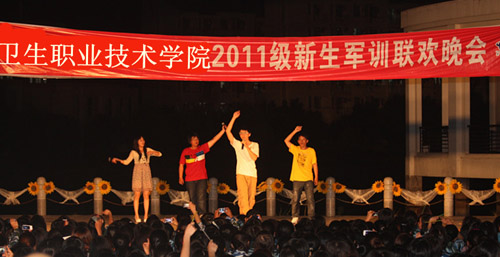 2011年9月15日晚,我院在音樂(lè)廣場(chǎng)隆重舉行2011級(jí)新生軍訓(xùn)聯(lián)歡晚會(huì),73919部隊(duì)教官、我院教師及2011級(jí)新生到場(chǎng)觀看。院黨委嚴(yán)肅書記、73919部隊(duì)毛立新副部隊(duì)長(zhǎng)、政治部陳錦輝主任、院黨委陳雄副書記、廖偉堅(jiān)副院長(zhǎng)、魏立娜副院長(zhǎng)出席了晚會(huì)。