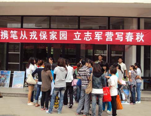 為了響應信息化軍隊的建設,吸引高素質人才入伍,我院于2011年10月14日配合閩侯縣征兵辦公室舉辦“攜筆從戎保衛(wèi)國家,立志從軍寫春秋”的征兵宣傳活動。