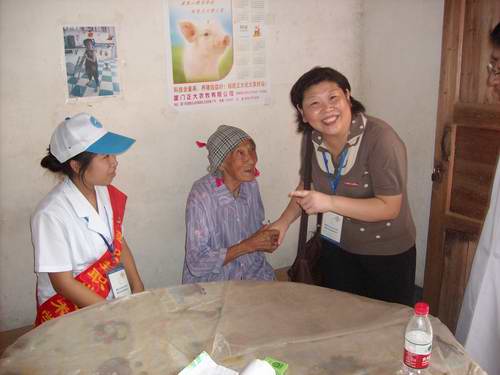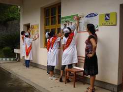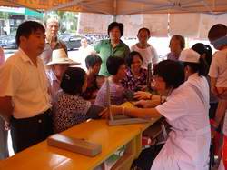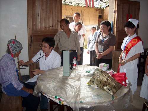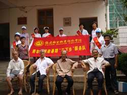 次日早晨,實踐團隊按預(yù)定計劃兵分兩路,魏立娜副院長帶領(lǐng)一部分隊員,在武平團縣委領(lǐng)導的陪同下,深入武平縣最北部的大禾鄉(xiāng),考察基層的衛(wèi)生資源狀況,與大禾鄉(xiāng)衛(wèi)生院負責人座談并贈送藥品,并到貧困烈屬家中,進行體檢義診。另一部分隊員在院團委老師的帶領(lǐng)下,在武平縣中心城區(qū)開展醫(yī)保宣傳、獻血控煙宣傳、體檢義診贈藥等活動,前來咨詢的群眾絡(luò)繹不絕,現(xiàn)場氣氛熱烈。上午的活動結(jié)束后,大家經(jīng)過短暫休息,又馬不停蹄的投入到下午的工作中。魏副院長等來到武平團縣委辦公室,同團縣委、縣衛(wèi)生局領(lǐng)導就基層衛(wèi)生人才培養(yǎng),加強雙方交流合作等事宜進行了座談,聽取了我院掛職干部葉文偉老師半年以來的工作匯報,其后進行了簡短的電腦贈送儀式。另一部分隊員來到武平縣光榮院,為光榮院里的老人義務(wù)體檢診療,贈送藥品。