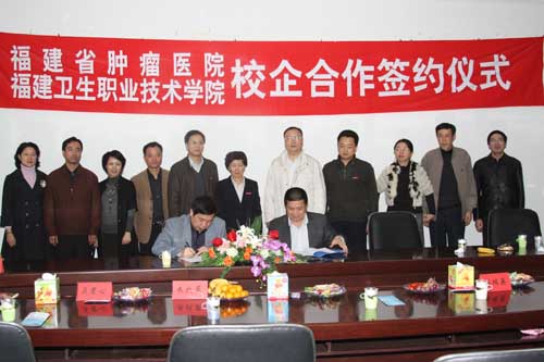 2010年12月1日我院與福建省腫瘤醫(yī)院舉行了校院合作簽約儀式。福建衛(wèi)生職業(yè)技術(shù)學(xué)院黨委書記嚴(yán)肅、院長林春明、副院長廖偉堅、福建省腫瘤醫(yī)院院長應(yīng)敏剛教授、副院長鄭雄偉、醫(yī)務(wù)科科長陳傳本、放療技術(shù)中心行政主任吳君心及相關(guān)工作人員出席了簽約儀式。