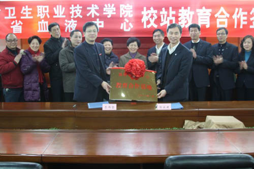 2011年1月17日下午,福建衛(wèi)生職業(yè)技術(shù)學(xué)院與福建省血液中心的校站合作教育簽約儀式在省血液中心隆重舉行。省血液中心郭永建主任、吳建忠書(shū)記、林青副主任,我院黨委嚴(yán)肅書(shū)記、廖偉堅(jiān)副院長(zhǎng)、魏立娜副院長(zhǎng)等領(lǐng)導(dǎo)出席了簽約儀式。簽約儀式由魏立娜副院長(zhǎng)主持。