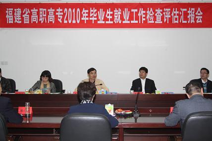 2010年11月4日,福建省公務(wù)員局暨福建省大中專畢業(yè)生就業(yè)工作領(lǐng)導(dǎo)小組專家組一行5人蒞臨我院進(jìn)行2010年畢業(yè)生就業(yè)工作檢查評估。院黨委嚴(yán)肅書記、陳雄副書記、學(xué)工處、團(tuán)委、就業(yè)辦以及各系部書記、行政秘書和輔導(dǎo)員參加了評估匯報會。會上,畢業(yè)生就業(yè)領(lǐng)導(dǎo)小組組長嚴(yán)肅書記對評估組專家的到來表示熱烈歡迎,并代表學(xué)院匯報了我院2010年畢業(yè)生就業(yè)工作開展情況。會后,評估組實地考查了就業(yè)工作的場所、設(shè)施,認(rèn)真查閱了相關(guān)材料。
