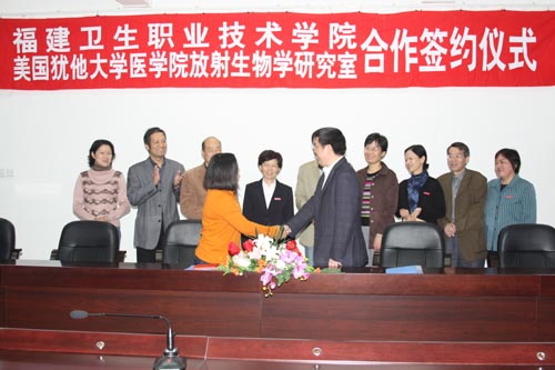 嚴(yán)肅書記、林春明院長(zhǎng)等領(lǐng)導(dǎo)熱情接待了田小燕博士。林春明院長(zhǎng)介紹了學(xué)院的基本情況與發(fā)展設(shè)想,對(duì)田小燕博士長(zhǎng)期以來關(guān)注學(xué)校發(fā)展表示感謝,希望田小燕博士今后繼續(xù)關(guān)心、支持學(xué)院的建設(shè)與發(fā)展,發(fā)揮所在研究室豐富研究資源的優(yōu)勢(shì),對(duì)學(xué)院教師科研能力的提高、科研項(xiàng)目的申報(bào)提供支持,希望雙方能在科研、教學(xué)和人才培養(yǎng)等方面進(jìn)行合作和交流。會(huì)后,我院與猶他大學(xué)醫(yī)學(xué)院放射生物研究室就科研項(xiàng)目和醫(yī)學(xué)教育合作、人員交流互訪簽署了合作協(xié)議。
