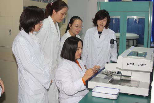 田小燕博士在廖偉堅(jiān)副院長(zhǎng)、臨床醫(yī)學(xué)系鄭向紅主任和林志明副主任的陪同下游覽了校園,美麗的校園風(fēng)光給田小燕博士留下了深刻的印象。田小燕博士還參觀了醫(yī)學(xué)基礎(chǔ)部、藥學(xué)系和護(hù)理系實(shí)驗(yàn)室,對(duì)學(xué)院教學(xué)科研條件的提高表示高興和感嘆。在醫(yī)學(xué)基礎(chǔ)部田小燕博士參觀了病理切片室、屏障系統(tǒng)動(dòng)物實(shí)驗(yàn)室、人體形態(tài)科學(xué)館、數(shù)碼顯微互動(dòng)等實(shí)驗(yàn)室,與師生進(jìn)行了交流,指導(dǎo)科研教學(xué)工作。