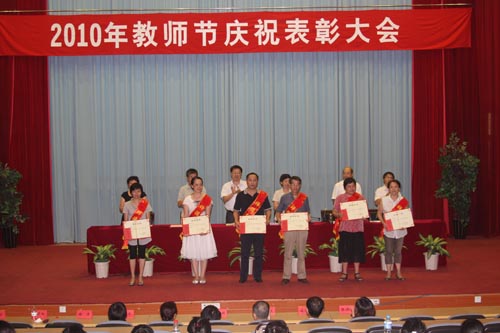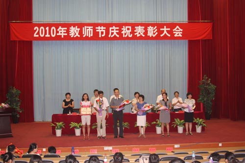 大會在雄壯的國歌聲中開始,季曉林副院長宣讀“2009~2010學(xué)年榮獲上級和學(xué)院表彰的教職工集體和個人名單,黃開良副院長宣讀獲教齡男滿30周年、女滿25周年教師名單,隨后,院領(lǐng)導(dǎo)為首屆“師德標兵”、從事教育工作男滿30周年女滿25周年的教師、院青年教師教學(xué)競賽獲獎教師及院級教學(xué)名師頒獎。