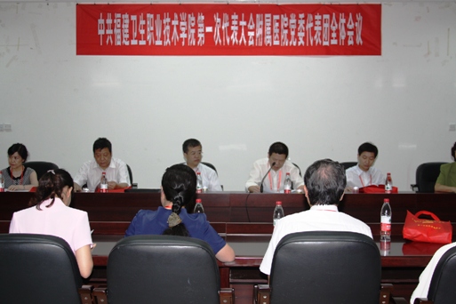 經(jīng)省衛(wèi)生廳黨組和省委教育工委批準(zhǔn),中國(guó)共產(chǎn)黨福建衛(wèi)生職業(yè)技術(shù)學(xué)院第一次代表大會(huì)于2010年7月4日隆重召開(kāi)。大會(huì)認(rèn)真審議并通過(guò)了嚴(yán)肅同志代表學(xué)院黨委所作的黨委工作報(bào)告和陳雄副書(shū)記代表學(xué)院紀(jì)委所作的紀(jì)委工作報(bào)告,選舉產(chǎn)生了中共福建衛(wèi)生職業(yè)技術(shù)學(xué)院第一屆委員會(huì)和紀(jì)律檢查委員會(huì)。省委教育工委常務(wù)副書(shū)記、省教育廳黨組副書(shū)記、副廳長(zhǎng)鄭傳芳,省衛(wèi)生廳副廳長(zhǎng)陳秋立,省委教育工委組織部部長(zhǎng)馬玉良、副部長(zhǎng)詹松青、副調(diào)研員郭林、副處級(jí)組織員陳洪堯,省衛(wèi)生廳廳直機(jī)關(guān)黨委專(zhuān)職副書(shū)記吳仕理等上級(jí)領(lǐng)導(dǎo)親臨指導(dǎo),學(xué)院老領(lǐng)導(dǎo)、各民主黨派代表受邀列席了會(huì)議。