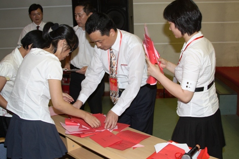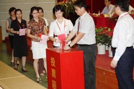 經(jīng)現(xiàn)場(chǎng)清點(diǎn)代表人數(shù)后,大會(huì)向每位正式代表分發(fā)了選票。代表們認(rèn)真填寫(xiě)選票,依次投票。整個(gè)投票過(guò)程組織嚴(yán)密,秩序井然。經(jīng)統(tǒng)計(jì),總監(jiān)票人林崧同志向大會(huì)宣布了每位候選人的得票情況。根據(jù)大會(huì)選舉辦法,嚴(yán)肅、李紅、陳雄、林春明、季曉林、黃開(kāi)良、廖偉堅(jiān)、魏立娜等8位同志當(dāng)選為中共福建衛(wèi)生職業(yè)技術(shù)學(xué)院第一屆委員會(huì)委員,楊誠(chéng)、陳雄、陳榕珍、鄭向紅、董榕等5位同志當(dāng)選為中共福建衛(wèi)生職業(yè)技術(shù)學(xué)院紀(jì)律檢查委員會(huì)委員。