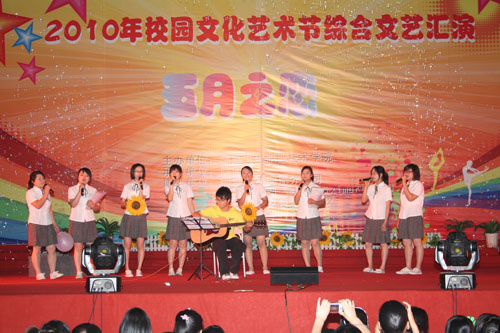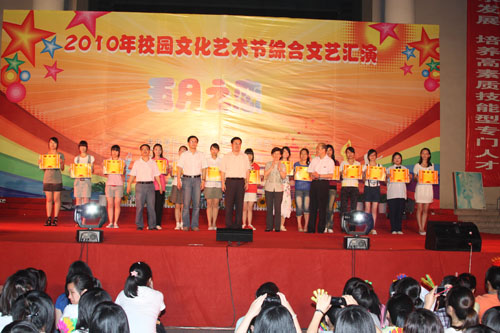 5月25日, 我院在圖書館前隆重舉行“2010年校園文化藝術(shù)節(jié)暨五月之戀”大型綜合文藝晚會。院黨委書記嚴肅、院長林春明、黨委副書記陳雄、副院長廖偉堅、黃開良、魏立娜及相關(guān)部門負責人出席晚會,與同學(xué)們一起觀看了演出。