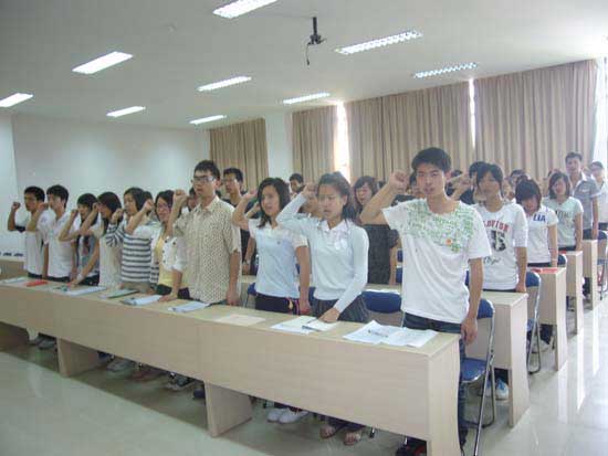 隨后,系團(tuán)總支實(shí)踐委員劉利根同學(xué)介紹了培訓(xùn)班的實(shí)施方案及工作安排。會上系學(xué)生會主席高福星同學(xué)帶領(lǐng)全體學(xué)員重溫入團(tuán)誓詞。呂斌同學(xué)代表全體學(xué)員表示一定嚴(yán)格遵守培訓(xùn)班的各項(xiàng)規(guī)定,希望通過培訓(xùn)班的學(xué)習(xí)使理論素養(yǎng)得到進(jìn)一步的提升,團(tuán)結(jié)協(xié)作的精神有明顯的提高,工作能力也會相應(yīng)的得到增強(qiáng)。