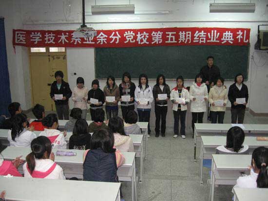 2010年2月2日下午,醫(yī)學(xué)技術(shù)系第五期業(yè)余分黨校結(jié)業(yè)典禮在系部第二階梯教室隆重舉行。結(jié)業(yè)典禮由系團(tuán)總支副書記黃小芳老師主持,系黨總支副書記洪聿榮老師和全體培訓(xùn)班學(xué)員出席了結(jié)業(yè)典禮。
