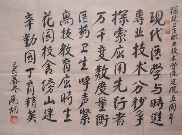 1月8日上午,學(xué)院邀請(qǐng)部分離退休老同志參加“開卷有益”石刻揭幕儀式。院黨委書記嚴(yán)肅首先對(duì)老同志蒞臨學(xué)院參觀指導(dǎo)表示歡迎,并衷心感謝老同志長(zhǎng)期以來(lái)對(duì)學(xué)院的關(guān)心支持,林春明院長(zhǎng)向老同志匯報(bào)了學(xué)院工作。原省衛(wèi)校第一任校長(zhǎng)、原省委常委、省委組織部長(zhǎng)、省政協(xié)副主席高胡等老同志對(duì)學(xué)院發(fā)展感到欣慰,高老現(xiàn)場(chǎng)賦詩(shī)一首:“現(xiàn)代醫(yī)學(xué)與時(shí)進(jìn),專業(yè)技術(shù)分秒爭(zhēng)。探索應(yīng)用先行者,萬(wàn)千變數(shù)度量衡。醫(yī)藥衛(wèi)生呼聲緊,高技教育應(yīng)時(shí)生?;▓@校舍傍山建,辛勤園丁育精英?!备呃系男略?shī)表達(dá)了老同志對(duì)學(xué)院的美好祝愿。