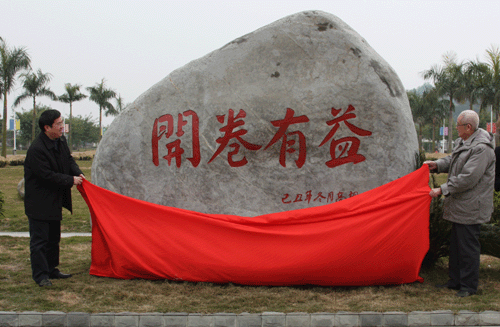 接著,高胡老校長(zhǎng)和林春明院長(zhǎng)為圖書館前“開卷有益“石刻(高胡題寫)揭幕。隨后離退休同志在院領(lǐng)導(dǎo)的陪同下參觀了校園。(辦公室)