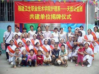 2009年9月30日下午,護(hù)理系第一黨支部部分教師黨員、學(xué)生黨員、入黨積極分子在支部書記龔海蓉老師的帶領(lǐng)下來(lái)到聽障兒童康復(fù)訓(xùn)練機(jī)構(gòu)——天新公益園舉辦“共建單位”揭牌儀式。謝濤書記與天新公益園冉枝瑜校長(zhǎng)簽訂共建協(xié)議,雙方建立公益事業(yè)戰(zhàn)略協(xié)作伙伴關(guān)系。護(hù)理系第一黨支部將對(duì)天新公益園實(shí)施長(zhǎng)期共建幫扶并把天新公益園作為護(hù)理系大學(xué)生志愿者服務(wù)基地。揭牌儀式之后,大家同孩子們一起玩游戲,吃月餅,教他們寫字、畫畫,給這些殘疾的孩子們送去溫暖和關(guān)懷。10月1日的東南快報(bào)A22版對(duì)此事進(jìn)行了跟蹤報(bào)到。(護(hù)理系)