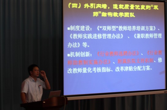 下午的會(huì)議由廖偉堅(jiān)副院長主持,首先由參會(huì)人員分六個(gè)小組圍繞本屆交流會(huì)“創(chuàng)新培養(yǎng)模式,強(qiáng)化辦學(xué)特色,提高教學(xué)質(zhì)量”的主題進(jìn)行討論,各小組組長對(duì)討論結(jié)果進(jìn)行了匯報(bào)。接著林春明院長作了會(huì)議總結(jié),他肯定了全院教師在教研科研工作中辛勤付出,認(rèn)為此次交流會(huì)主題突出,內(nèi)容豐富,教職工們參與踴躍,對(duì)學(xué)院的建設(shè)發(fā)展提出了很好的意見和建議,要求相關(guān)行政部門要對(duì)這些意見和建議進(jìn)行梳理并落實(shí)到行動(dòng)上。林院長還從學(xué)院目前的實(shí)際出發(fā)談了未來兩三年的工作思路,指出學(xué)院要從辦學(xué)目標(biāo)定位和辦學(xué)規(guī)模、推進(jìn)人才培養(yǎng)模式改革、專業(yè)建設(shè)與閩臺(tái)教育合作、課程建設(shè)、師資隊(duì)伍建設(shè)、實(shí)訓(xùn)實(shí)習(xí)基地建設(shè)、制度建設(shè)、社會(huì)服務(wù)、學(xué)校文化建設(shè)、附屬醫(yī)院建設(shè)等方面入手抓好十項(xiàng)工作。最后他對(duì)全體教師提出了三點(diǎn)希望:一、要多關(guān)心關(guān)注學(xué)院的建設(shè)和發(fā)展;二、結(jié)合辦學(xué)目標(biāo)提升自身素質(zhì),包括教育理念、知識(shí)結(jié)構(gòu)和職業(yè)技能;三、要關(guān)愛學(xué)生,共同促進(jìn)學(xué)生的健康發(fā)展。