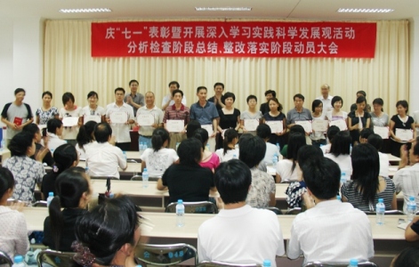 嚴(yán)肅書記作 “七一”表彰講話和轉(zhuǎn)段動(dòng)員,代表院黨委向辛勤工作在教育、教學(xué)、管理、服務(wù)等各崗位上的廣大共產(chǎn)黨員表示節(jié)日的問(wèn)候!向受表彰的各先進(jìn)集體和優(yōu)秀個(gè)人表示熱烈祝賀并致以崇高的敬意!她號(hào)召全院各級(jí)黨組織和廣大黨員要認(rèn)清形勢(shì),明確肩負(fù)的責(zé)任和使命,以更加奮發(fā)有為、昂揚(yáng)向上的精神狀態(tài),以對(duì)黨和人民高度負(fù)責(zé)的精神,解放思想,更新觀念,勤奮學(xué)習(xí),拼搏奉獻(xiàn),以學(xué)院發(fā)展為己任,把全部心思和精力集中到加快學(xué)院發(fā)展上,把各方面的力量凝聚到加快學(xué)院發(fā)展上,把共產(chǎn)黨人的先進(jìn)性體現(xiàn)到加快學(xué)院發(fā)展上,不斷提升學(xué)院人才培養(yǎng)工作水平,爭(zhēng)取早日成為省內(nèi)一流、國(guó)內(nèi)領(lǐng)先的高職院校。在轉(zhuǎn)段動(dòng)員中,嚴(yán)肅書記回顧總結(jié)我院開展學(xué)習(xí)實(shí)踐科學(xué)發(fā)展觀活動(dòng)分析檢查階段的工作,全面部署整改落實(shí)階段的工作任務(wù),她指出,分析檢查階段通過(guò)召開領(lǐng)導(dǎo)班子專題民主生活會(huì)、形成領(lǐng)導(dǎo)班子分析檢查報(bào)告、組織群眾評(píng)議等重點(diǎn)工作,做到了把學(xué)習(xí)貫徹始終,主動(dòng)走近群眾征求意見(jiàn),注重突出實(shí)踐特色,堅(jiān)持邊學(xué)邊改、邊查邊改,著力解決實(shí)際問(wèn)題,完成了學(xué)習(xí)實(shí)踐活動(dòng)第二階段的各項(xiàng)工作任務(wù),取得了階段性成效。對(duì)于整改落實(shí)階段工作,她強(qiáng)調(diào),制定整改落實(shí)方案要充分發(fā)揚(yáng)民主,廣泛聽(tīng)取師生意見(jiàn),強(qiáng)調(diào)問(wèn)計(jì)于民、問(wèn)需于民,方案要做到“四明確一承諾”。集中解決突出問(wèn)題時(shí),重點(diǎn)解決人才培養(yǎng)質(zhì)量、教師隊(duì)伍建設(shè)、服務(wù)經(jīng)濟(jì)社會(huì)發(fā)展、促進(jìn)畢業(yè)生就業(yè)、維護(hù)校園穩(wěn)定等方面的突出問(wèn)題;重點(diǎn)解決黨員干部黨性黨風(fēng)黨紀(jì)方面的突出問(wèn)題以及學(xué)術(shù)道德、學(xué)風(fēng)建設(shè)中存在的突出問(wèn)題。在完善體制機(jī)制時(shí),一方面要對(duì)現(xiàn)有的規(guī)章制度進(jìn)行清理。按照廢、改、立分類,對(duì)現(xiàn)有政策、制度、辦法進(jìn)行系統(tǒng)清理,對(duì)一些不符合科學(xué)發(fā)展觀要求的制度,該廢止的立即廢止,該修訂的及時(shí)修訂完善。另一方面要確定制度建設(shè)的重點(diǎn)。特別要從完善黨委領(lǐng)導(dǎo)下的院長(zhǎng)負(fù)責(zé)制、創(chuàng)新學(xué)院內(nèi)部管理體制、深化干部人事制度改革、構(gòu)建現(xiàn)代大學(xué)制度、加強(qiáng)黨的建設(shè)等方面入手,探索完善符合科學(xué)發(fā)展觀要求的長(zhǎng)效機(jī)制,形成有利于學(xué)院科學(xué)發(fā)展的制度導(dǎo)向。