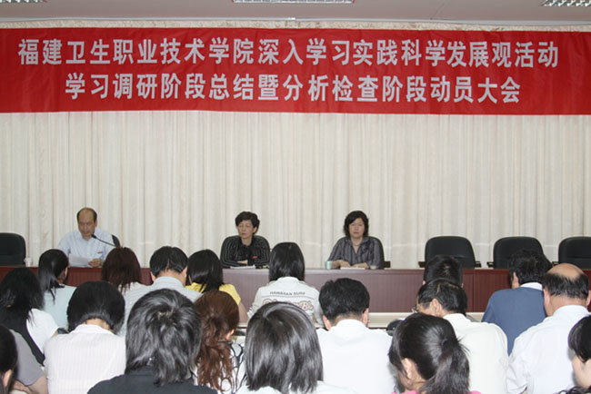 5月14日,我院召開深入學(xué)習(xí)實(shí)踐科學(xué)發(fā)展觀活動(dòng)第一階段總結(jié)暨第二階段動(dòng)員大會(huì)。福建省衛(wèi)生廳學(xué)習(xí)實(shí)踐科學(xué)發(fā)展觀活動(dòng)檢查組高榕芳副調(diào)研員蒞臨指導(dǎo)。院領(lǐng)導(dǎo)陳雄同志主持大會(huì),院黨委嚴(yán)肅書記作學(xué)院深入學(xué)習(xí)實(shí)踐科學(xué)發(fā)展觀活動(dòng)第一階段總結(jié)和第二階段動(dòng)員報(bào)告。