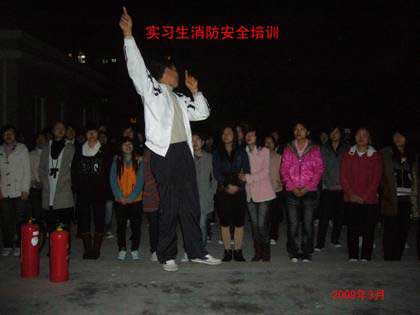 根據(jù)教育廳學校安全辦公室頒發(fā)的《關(guān)于認真做好春季開學初學校安全工作的通知》和轉(zhuǎn)發(fā)福建省人民政府安全生產(chǎn)委員會辦公室《關(guān)于認真汲取近期火災事故教訓進一步加強冬季防火工作的通知》以及國務院安全生產(chǎn)委員會辦公室的文件精神。在學院領導高度重視下,2009年3月3日與10日由保衛(wèi)處牽頭,在輔導員和公寓管理員的協(xié)助下,組織西洪、麥園兩處實習生住宿點舉行兩場消防逃生演練和滅火器使用現(xiàn)場講解活動。逃生演練過程以實戰(zhàn)出發(fā),模擬白天和夜間(斷電)情況下發(fā)生火災,學生如何按照指定線路快速逃生,并強調(diào)逃生時一定切記攜帶濕毛巾用其捂住嘴巴并彎腰跑步快速離開火場,確保安全;同時還現(xiàn)場詳細講解滅火器的使用方法和逃生演練過程存在問題及注意事項。共有300多人參加演練。通過模擬演練提高了學生的自我保護和安全防范意識,達到了預期的目的。