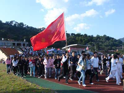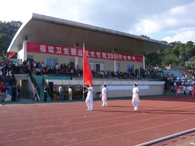 2008年11月12日下午,我院在學(xué)院田徑運(yùn)動場舉行2008年田徑運(yùn)動會開幕式。并在開幕式后舉行了師生千人環(huán)校跑活動。