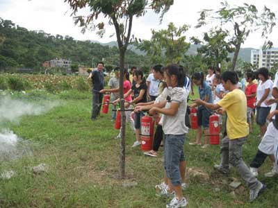 首先黃世清老師細(xì)心地講解了滅火器材的使用方法、注意事項(xiàng)并且進(jìn)行示范。然后武剛老師點(diǎn)燃事先備好的木柴,并親自指導(dǎo)新生使用滅火器滅火。我系新生按照事先安排,4人組成1個(gè)小分隊(duì),每個(gè)小分隊(duì)成員在武剛老師和黃世清老師指導(dǎo)下都當(dāng)了一回消防員,進(jìn)行實(shí)戰(zhàn)滅火。