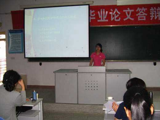 在系領(lǐng)導(dǎo)的直接領(lǐng)導(dǎo)和參與下,指導(dǎo)老師與廣大學(xué)生緊密配合、相互協(xié)調(diào),使論文答辯工作順利完成。本次畢業(yè)論文答辯要求每位學(xué)生完成論文后,制作PPT并上臺答辯。在答辯中,學(xué)生認真向老師匯報論文的寫作目的和過程以及相關(guān)結(jié)論,答辯老師仔細傾聽學(xué)生的陳述,并提出相關(guān)問題,大部分學(xué)生對老師提出的問題都能詳細的給出結(jié)論,說明教師在指導(dǎo)論文寫作過程中確實下了功夫,學(xué)生也認真閱讀了大量文獻,豐富了專業(yè)知識。