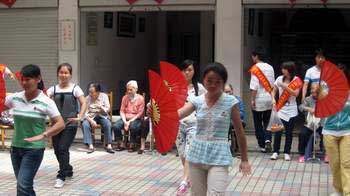 早晨8:30,義工們一到福利院就開始忙碌起來:有的切西瓜,有的蒸粽子,有的與老人聊家常。9點(diǎn),“米粒心,粽葉情”文藝節(jié)目正式開始。有功夫扇、太極劍、唱歌、傣族舞等,應(yīng)接不暇的精彩節(jié)目讓老人們笑逐顏開。