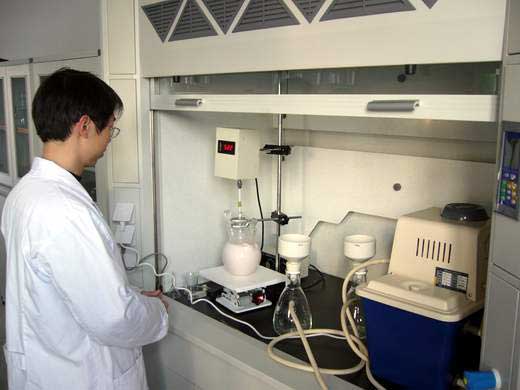 為我院順利申報國家三類新藥“TA120”,藥學系課題組正日夜兼程,忙碌于實驗室。目前,課題合成小組進展順利,圖為合成小組在實驗室合成“TA120”。(藥學系)