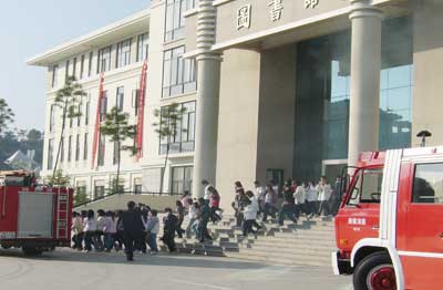 演練于下午三時三十分正式開始,分為火災(zāi)報(bào)警、人員緊急疏散逃生和火災(zāi)撲救三個環(huán)節(jié)。演練模擬圖書館著火,學(xué)院監(jiān)控室接到報(bào)警后,立即報(bào)告院領(lǐng)導(dǎo)并撥打火警“119”;學(xué)院啟動消防預(yù)案,老師引導(dǎo)學(xué)生迅速逃離火災(zāi)現(xiàn)場;閩侯縣公安消防大隊(duì)一中隊(duì)派出14名消防官兵,3部消防車進(jìn)行滅火。演練過程指揮有力、行動有序。演練現(xiàn)場人聲鼎沸,氣氛緊張,秩序井然,演習(xí)十分逼真有效,達(dá)到了預(yù)期的效果。