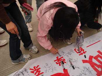 下午4點整,簽字儀式正式開始,活動現(xiàn)場掛上了“創(chuàng)優(yōu)良學風,正嚴謹考風”的字幅。同學們積極參加簽字儀式,大家都不約而同地在印有“誠信應考,從我做起”的橫幅上簽上了自己的名字,以此表達自己對考場紀律的理解、認可、遵守,同時也表達了對誠信應考的決心。活動中,系黨總支歐春木書記到場觀看,并對此次活動的意義予以肯定,歐書記指出,同學們應學會尊重他人的勞動成果,克服僥幸心理及虛榮心理,正確認識考試的目的,考出自己的真實水平,要時刻謹記“以誠信考試為榮,以違紀作弊為恥”。