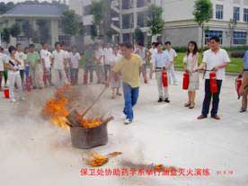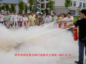 7.公基部、藥學系在保衛(wèi)處的配合下、各系領(lǐng)導(dǎo)親臨的組織下分別在5月29日和6月19日舉行由全體老師和學生會干部、舍長參加的聯(lián)合滅火演練。