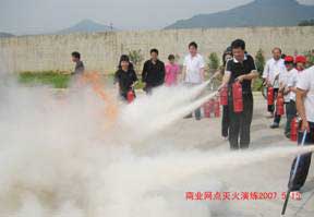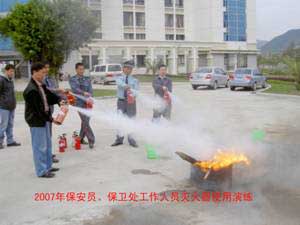 6.為促進商業(yè)網(wǎng)點、食堂全體職工對消防知識的了解,提高消防安全意識,保護人身安全,將損失減少到最低限度, 2007年5月15日下午,保衛(wèi)處組織進行滅火器使用培訓(xùn)和現(xiàn)場油盆滅火演練,共使用滅火器70個,參加人數(shù)近百人。