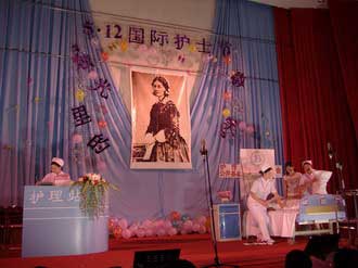 為慶祝2007年國際護(hù)士節(jié),紀(jì)念近代護(hù)理的創(chuàng)始人南丁格爾,5月11日晚6時(shí),由護(hù)理系、公共基礎(chǔ)部聯(lián)合舉辦的“ 燭光里的微笑”5.12國際護(hù)士節(jié)慶祝活動在學(xué)術(shù)廳舉行。院臨時(shí)黨委書記陳明非、院副書記魏麗娜、公共基礎(chǔ)部書記洪聿榮、護(hù)理系劉登蕉主任、謝濤書記、劉珍紅副主任等領(lǐng)導(dǎo)及老師出席了此次晚會。