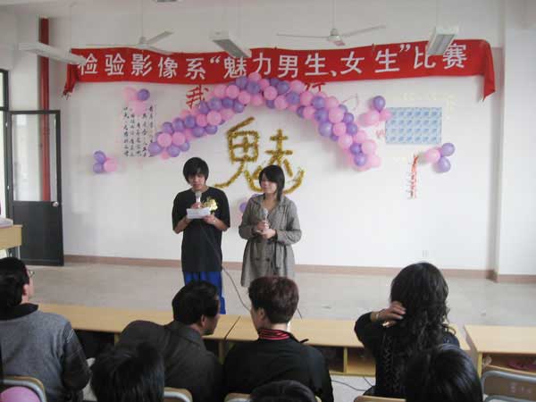 檢驗(yàn)影像系于2007年4月26日下午在教學(xué)樓205舉行了“魅力男生、女生”預(yù)選賽,本次活動(dòng)有10余名選手參加,通過“個(gè)性才藝,你我爭風(fēng)”、綜合知識(shí)問答、形象展示和“尋找同伴,同舟共濟(jì)”4輪的比賽,最終評(píng)選出一、二、三等獎(jiǎng)、鼓勵(lì)獎(jiǎng)和最佳人氣獎(jiǎng)。