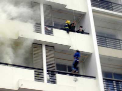 演練于下午三時(shí)正式開始,分為火災(zāi)報(bào)警、人員緊急疏散逃生和火災(zāi)撲救三個(gè)環(huán)節(jié)。演練模擬學(xué)生公寓著火,學(xué)院值班室接到報(bào)警后,立即報(bào)告院領(lǐng)導(dǎo)并撥打火警“119”;院領(lǐng)導(dǎo)啟動(dòng)消防預(yù)案,老師引導(dǎo)學(xué)生迅速逃離火災(zāi)現(xiàn)場;閩侯縣公安消防大隊(duì)一中隊(duì)派出14名消防官兵,2部消防車進(jìn)行實(shí)戰(zhàn)滅火。演練過程指揮有力、行動(dòng)有序。演練現(xiàn)場人聲鼎沸,氣氛緊張,秩序井然,演習(xí)十分逼真有效,達(dá)到了預(yù)期的效果。