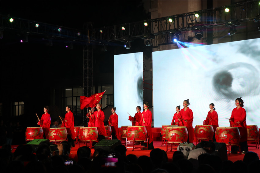 紅衣翩翩,鼓點陣陣,晚會由護理系、藥學系選送的水鼓舞表演《龍的傳人》拉開序幕。