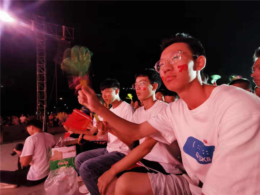 華燈初上,已落座的各系學生就分為5個方陣,展開了一場激烈的拉歌表演,你方唱罷我登場,展現(xiàn)了學生的青春風貌,將現(xiàn)場氣氛推向一個小高潮。